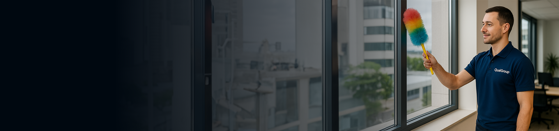 Keeping your commercial space clean can be frustrating. When cleaning isn’t done right, it costs you lost staff productivity, health issues, lower morale, legal and compliance issues, and more. We’re here to help. As a Professional cleaning company When you work with QualGroup, you get: