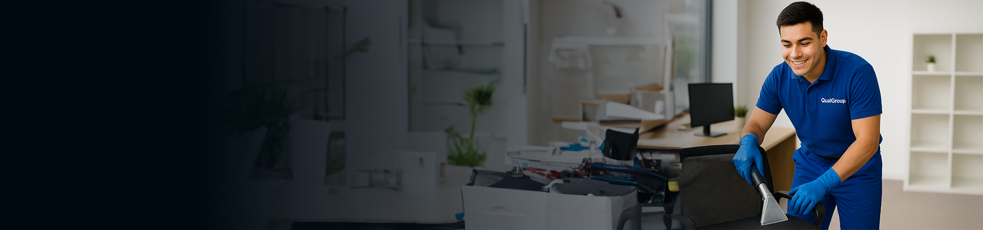 Keeping your commercial space clean can be frustrating. When cleaning isn’t done right, it costs you lost staff productivity, health issues, lower morale, legal and compliance issues, and more. We’re here to help. As a Professional cleaning company When you work with QualGroup, you get: